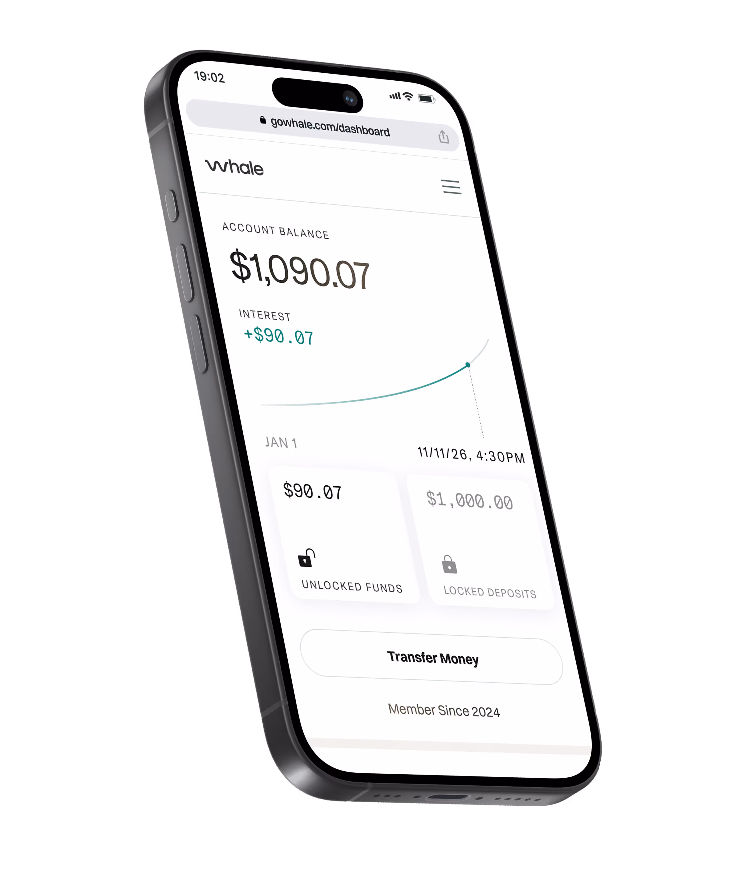 Your deposit is held in cash in an FDIC-insured account so you earn interest risk-free. Whale never invests your money in any way.